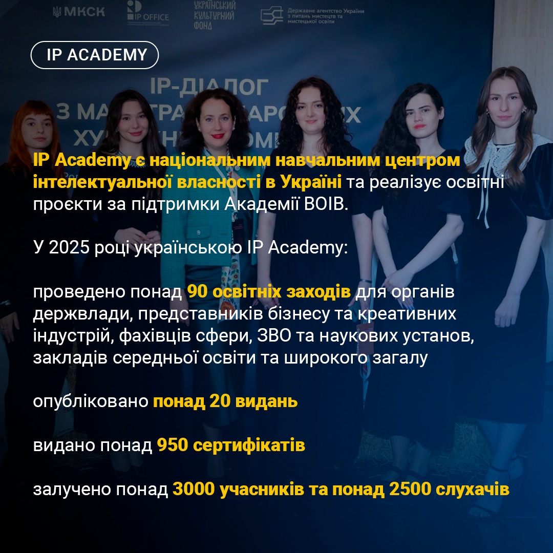 IP Academy є національним навчальним центром інтелектуальної власності в Україні та реалізує освітні проєкти за підтримки Академії ВОІВ.