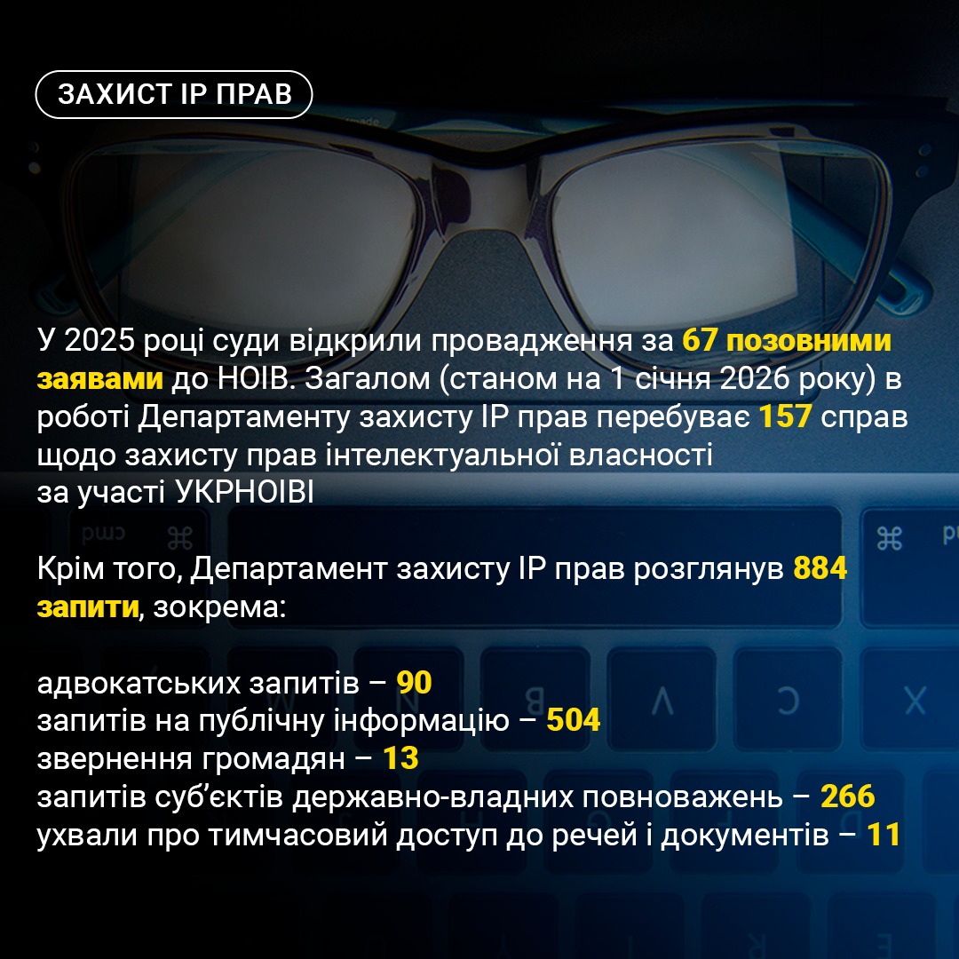 Крім того, Департамент захисту IP прав розглянув 884 запити, зокрема: