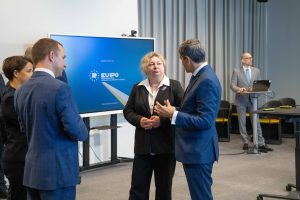 У межах візиту українська делегація провела двосторонню зустріч із Виконавчим директором EUIPO Жоао Неграу та керівництвом Відомства, під час якої сторони обговорили поглиблення співробітництва у сфері торговельних марок та промислових зразків.