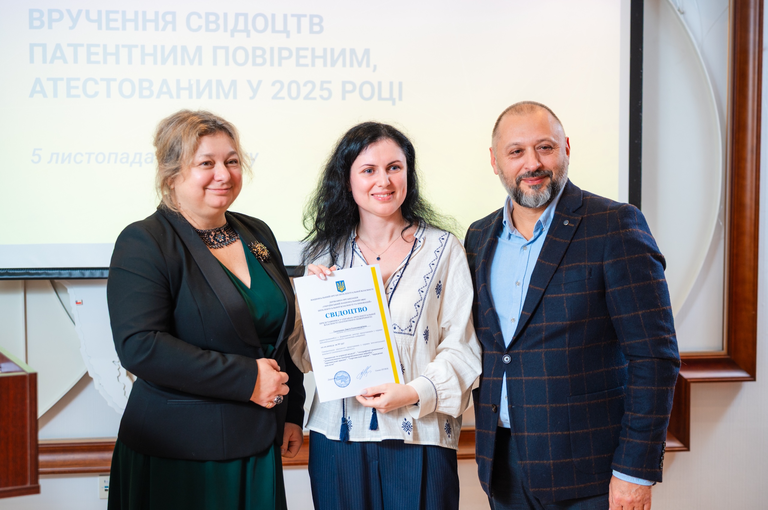 5 листопада 2025 року в Українському національному офісі інтелектуальної власності та інновацій (УКРНОІВІ/IP офіс) відбулося вручення свідоцтв представникам у справах інтелектуальної власності (патентним повіреним), які успішно пройшли атестацію та відомості про яких були внесені до Державного реєстру представників у справах інтелектуальної власності.