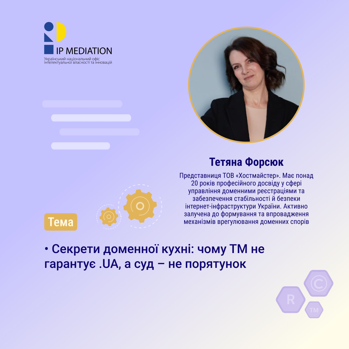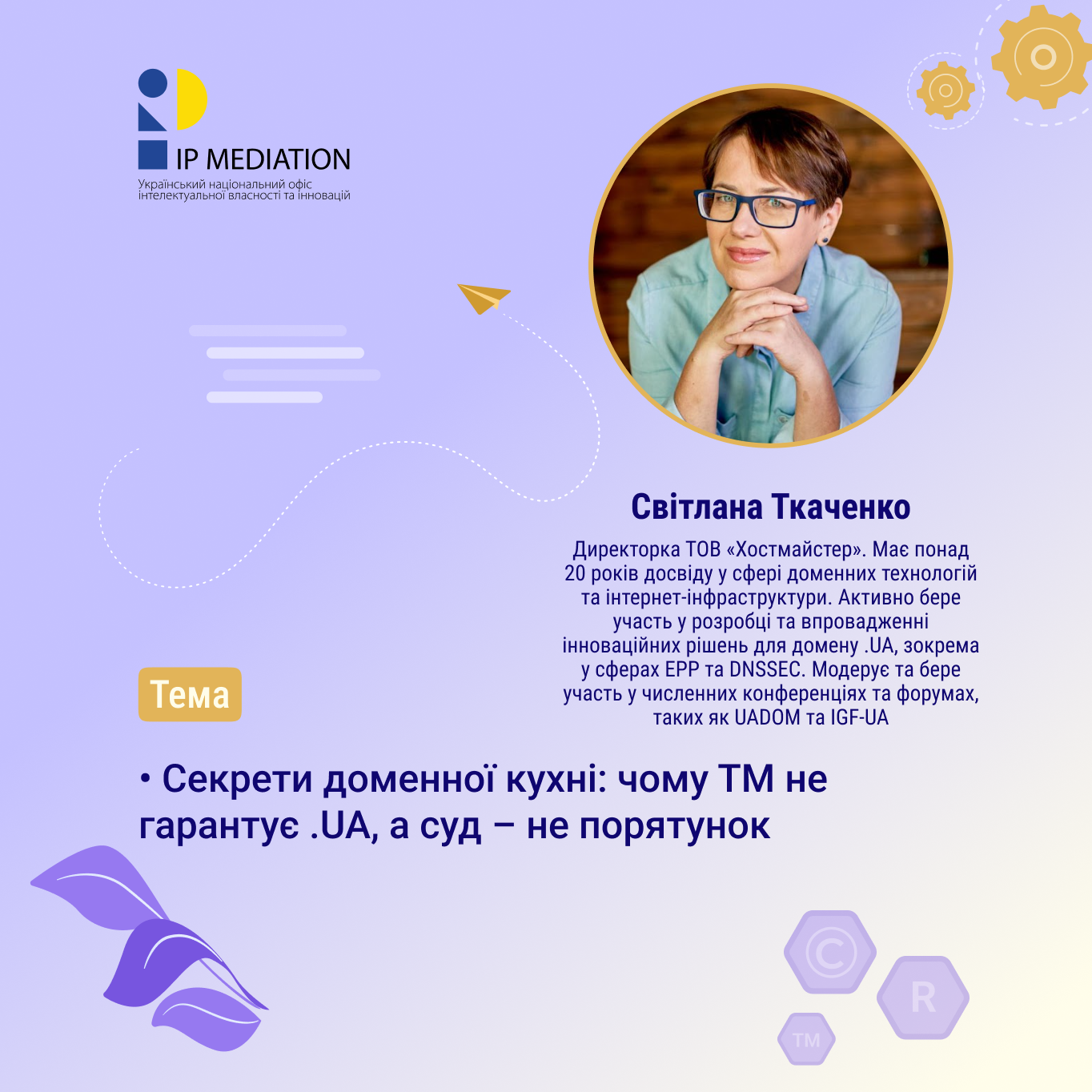 Також тренери поділяться власним досвідом залучення медіації до вирішення спорів у сфері доменних імен, а також розкажуть, як правові інструменти можуть ефективно поєднувати технічні та правові інструменти для досягнення справедливих рішень.