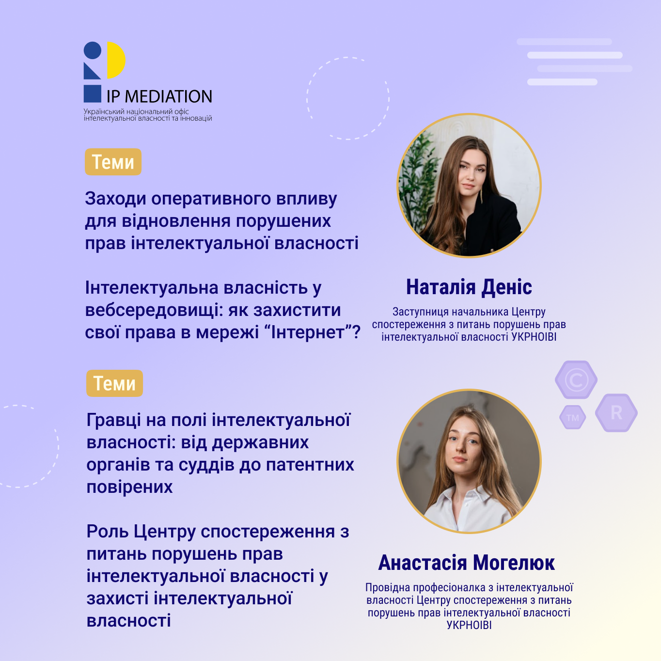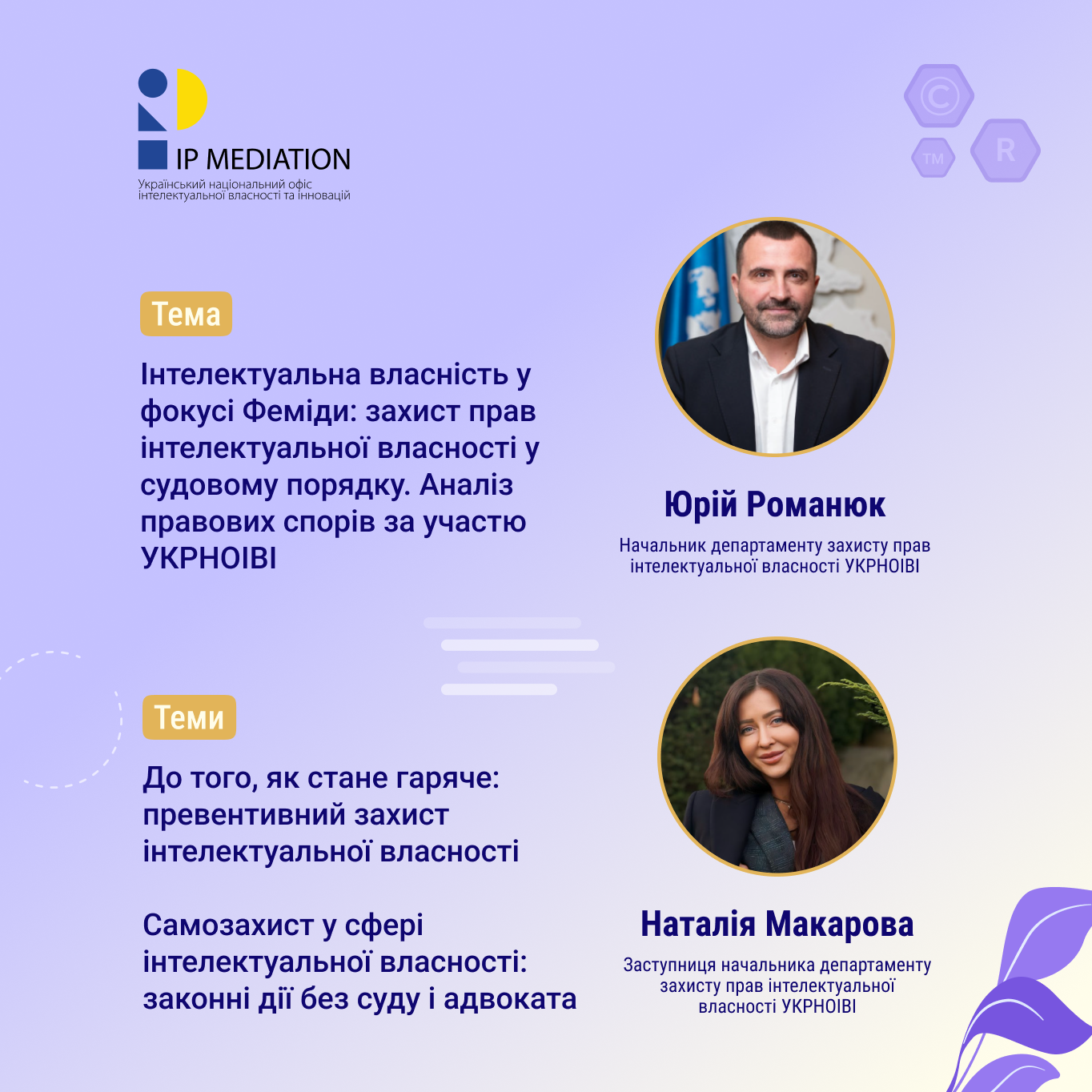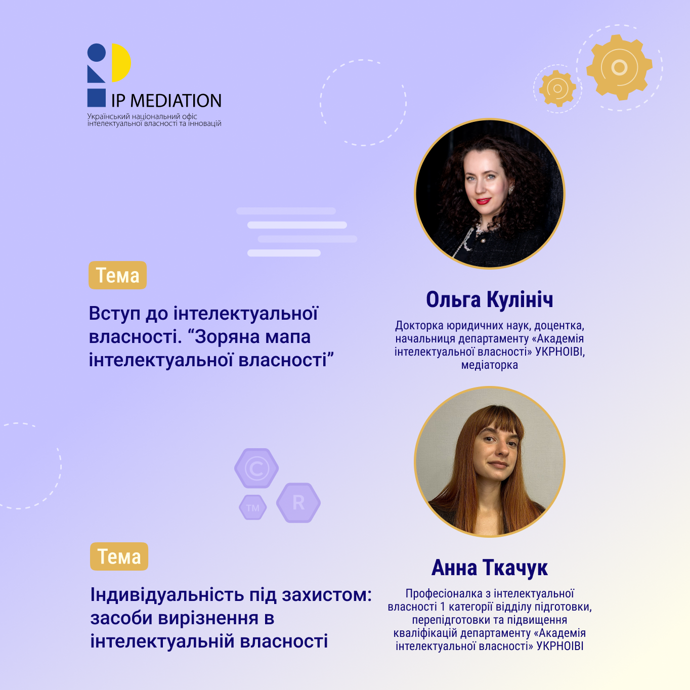 Тренери презентуватимуть ключові теми, що стосуються врегулювання спорів у сфері інтелектуальної власності.
