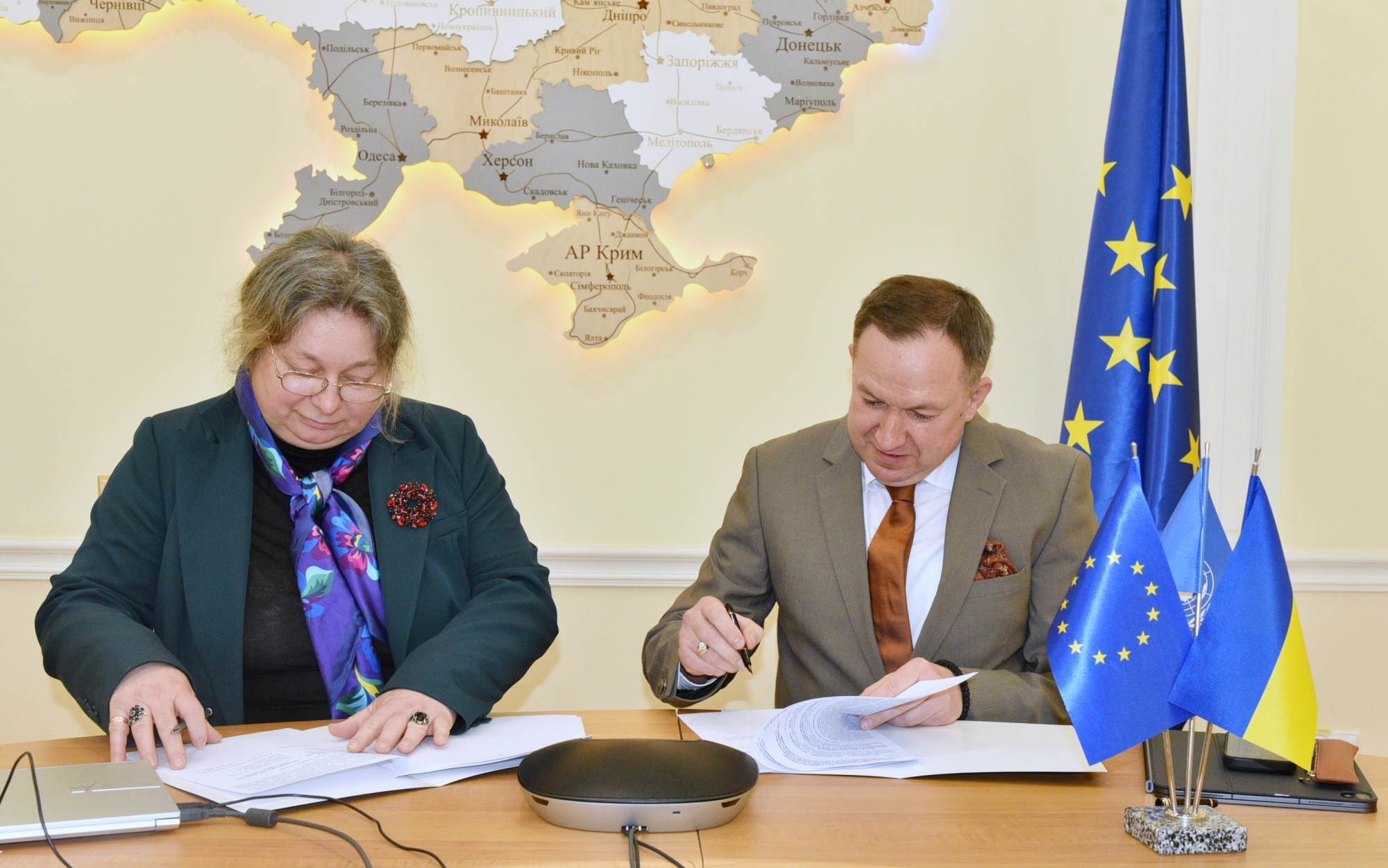 Меморандум про співпрацю підписали очільниця УКРНОІВІ Олена Орлюк та глава Офісу ЄОПП в Україні Юрій Волошин